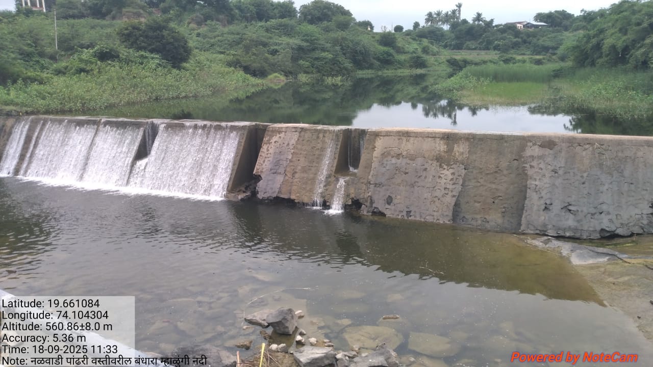 नळवाडी पांढरी वस्तीवरील बंदारा म्हाळुंगी नदी.
